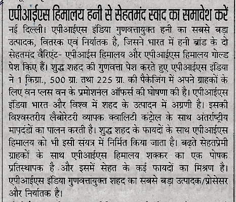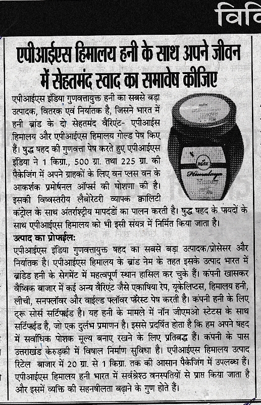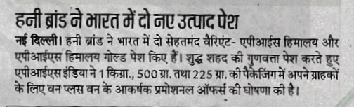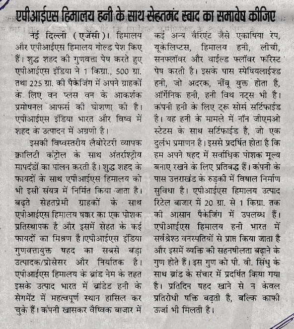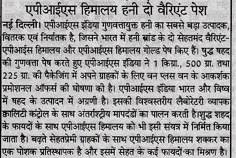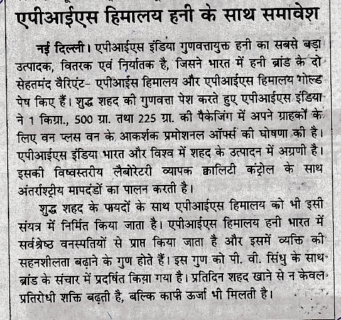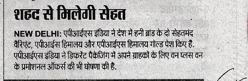 Recent Published Articles in News Papers & Magazines – Apis Himalaya Honey & Gold Honey :-